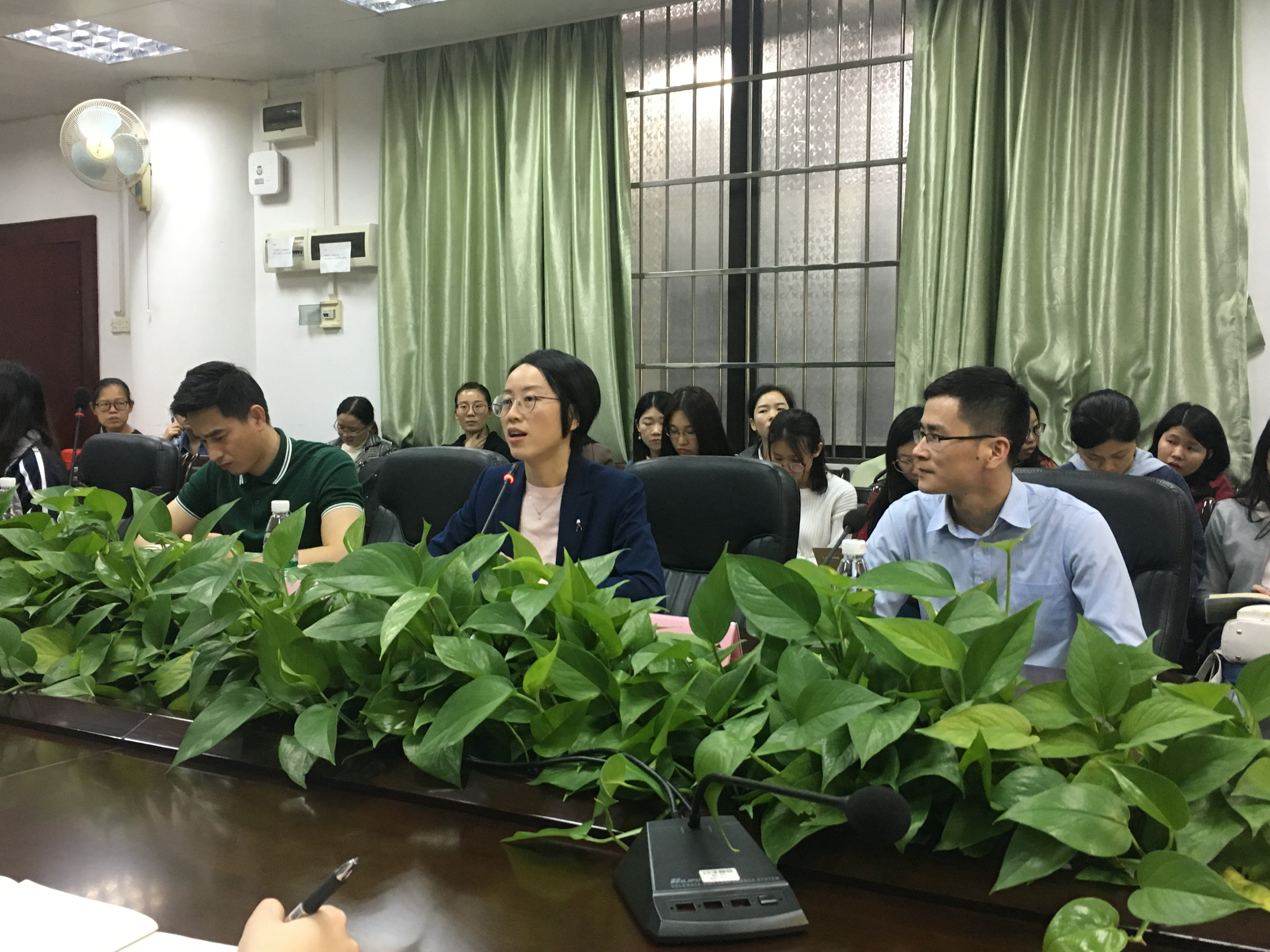 在正式经验交流会开始前,辅导员余晓玲老师正式隆重介绍徐喜春老师。徐老师在校与工作期间,科研能力表现突出,荣获2017年度马克思主义理论与实践专项课题之青年课题立项、“创青春”全国创业理论与实践研讨会论文评选二等奖,于思想理论教育、教育科学研究、教育科学研究和中学政治教学参考等核心期刊发表论文,合计26篇。此外,余老师表达了对本次交流会的期待之情。